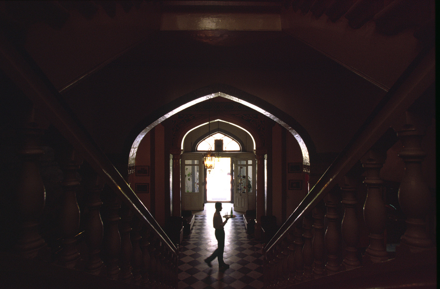 Read moreA waiter brings drinks to the bar of the Baron Hotel in Aleppo, Syria, on September 13, 2002. Built in 1911, the hotel was a relic of a more glamorous era whose past guests included the Shah of Iran, Agatha Christie and Lawrence of Arabia. As of 2016, the Baron Hotel still stands, but hasn't had a paying guest in years, is falling into disrepair, and has housed numerous refugees fleeing the violence all around. #