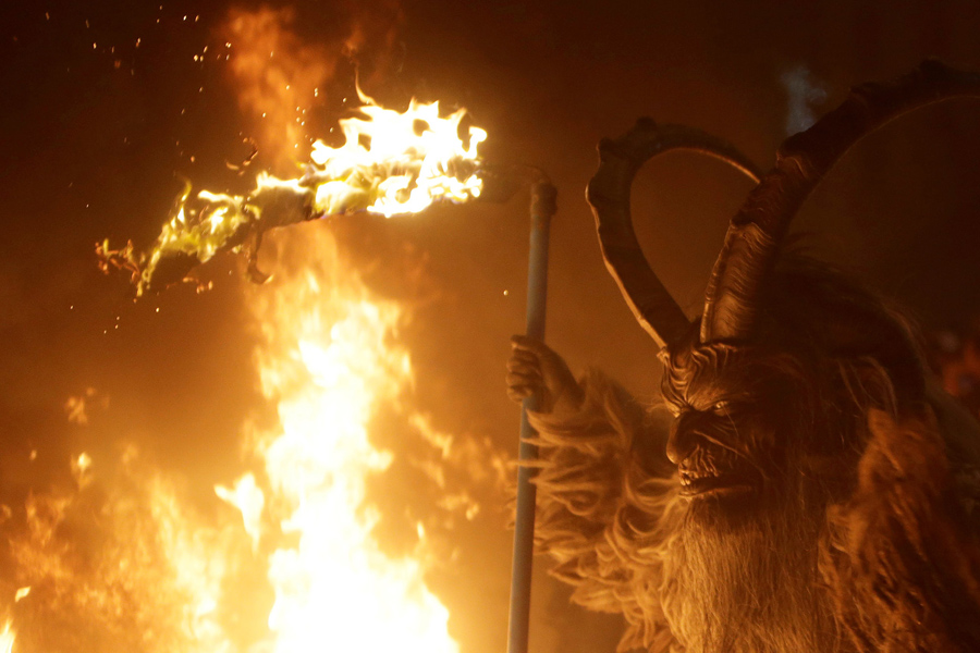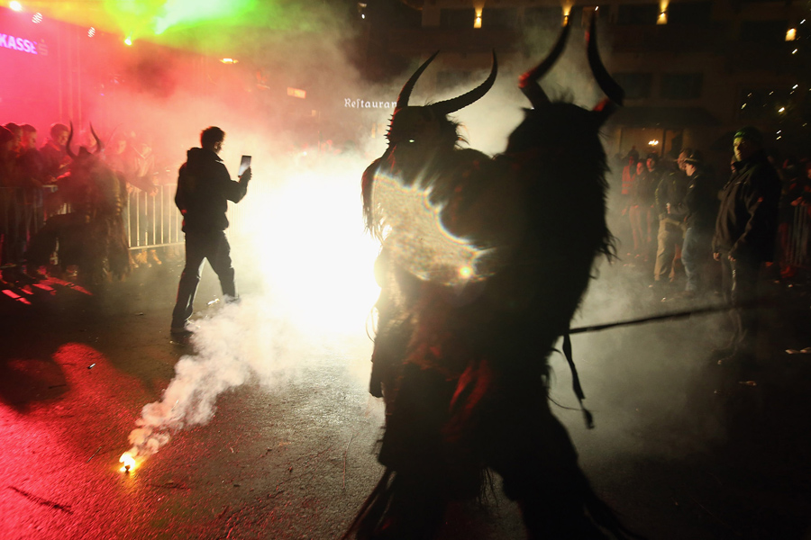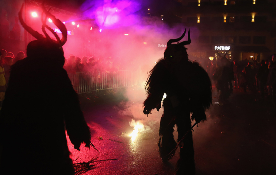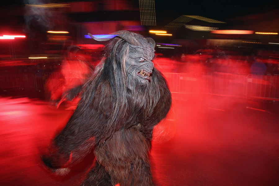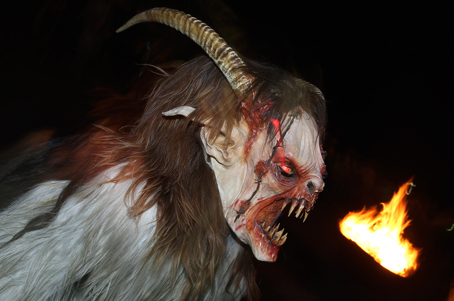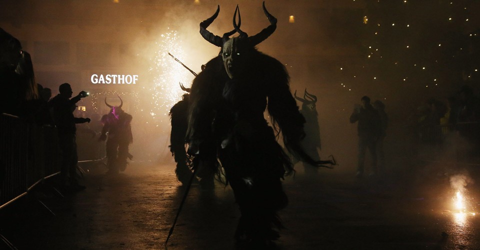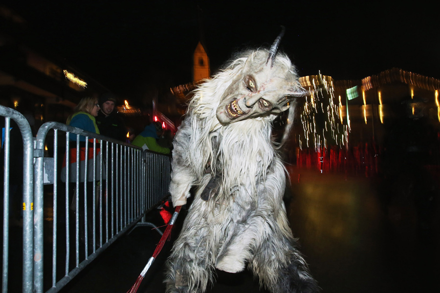 While Saint Nicholas may bring gifts to good boys and girls, ancient folklore in Europe's Alpine region also tells of Krampus, a frightening beast-like creature who emerges during the Yule season, looking for naughty children to punish in horrible ways—or possibly to drag back to his lair in a sack. In the last few decades, parts of Austria have seen the founding of numerous village Krampus associations that parade without St. Nick, frightening children on Krampusnacht, chasing them and hitting them with sticks, during an (often alcohol-fueled) run through the dark streets.