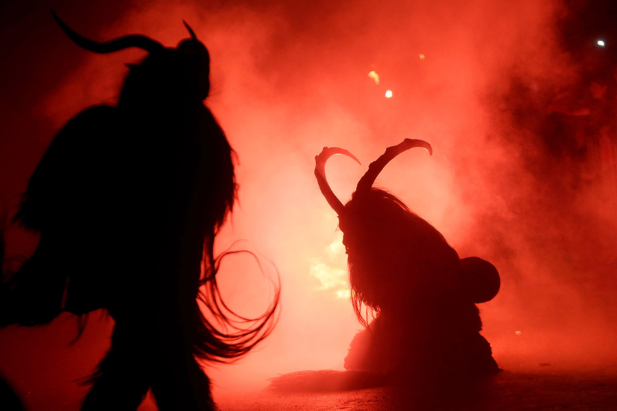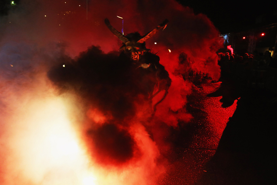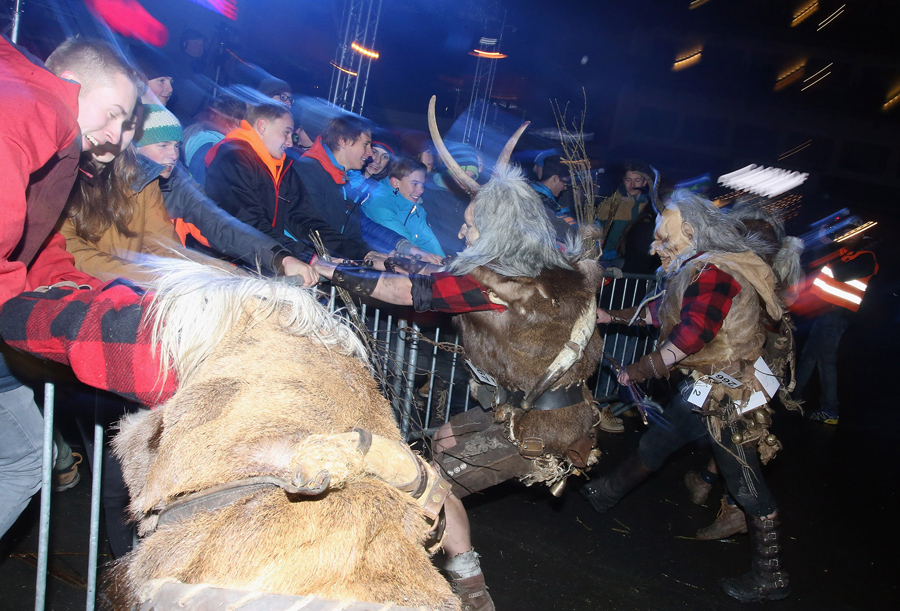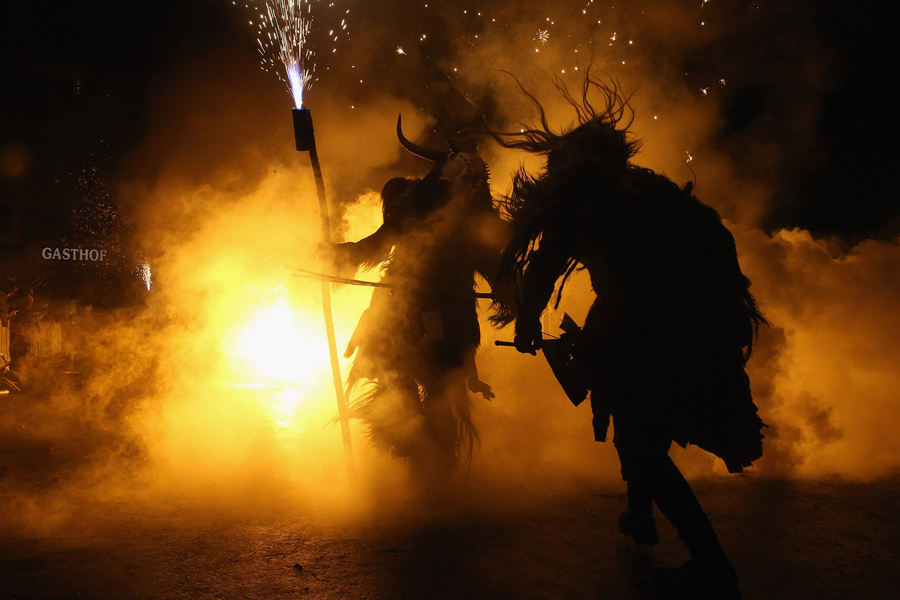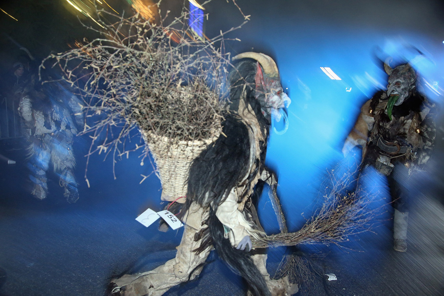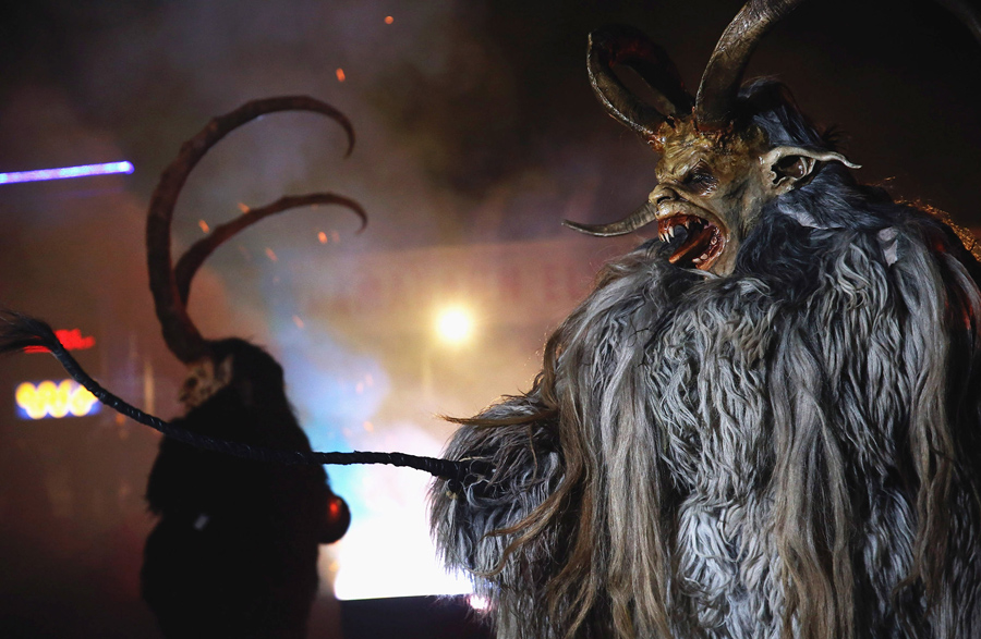 While Saint Nicholas may bring gifts to good boys and girls, ancient folklore in Europe's Alpine region also tells of Krampus, a frightening beast-like creature who emerges during the Yule season, looking for naughty children to punish in horrible ways—or possibly to drag back to his lair in a sack. In the last few decades, parts of Austria have seen the founding of numerous village Krampus associations that parade without St. Nick, frightening children on Krampusnacht, chasing them and hitting them with sticks, during an (often alcohol-fueled) run through the dark streets.