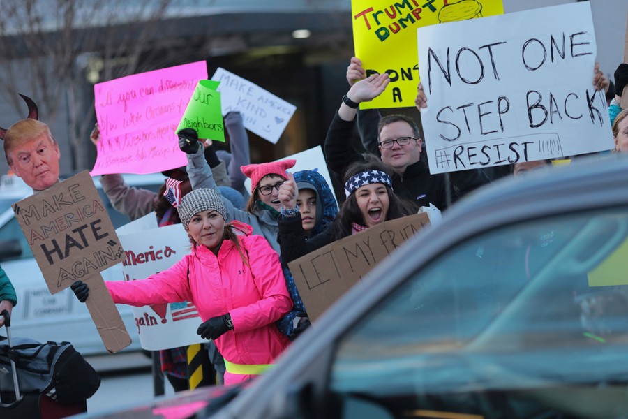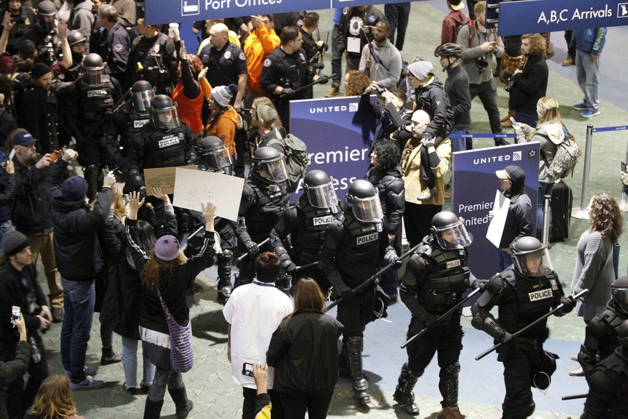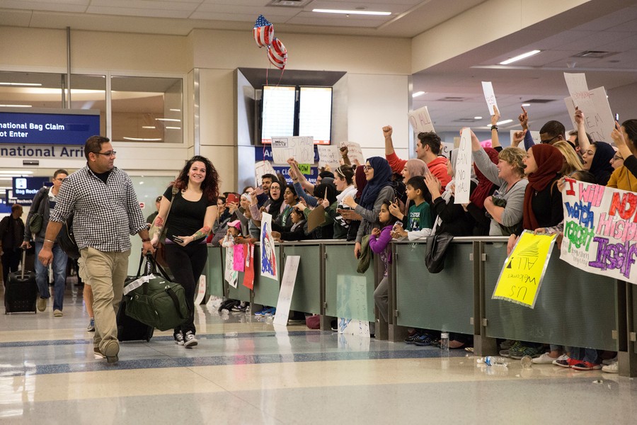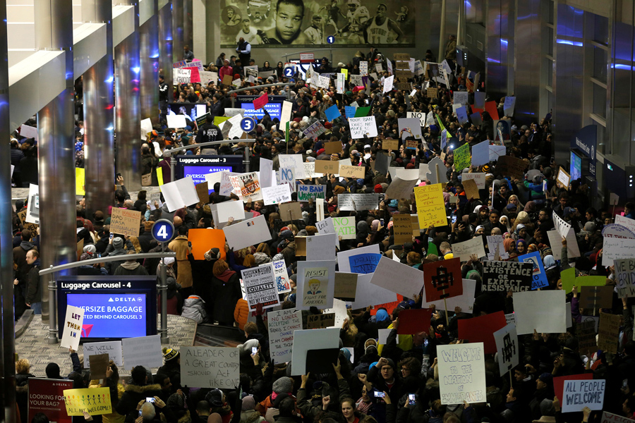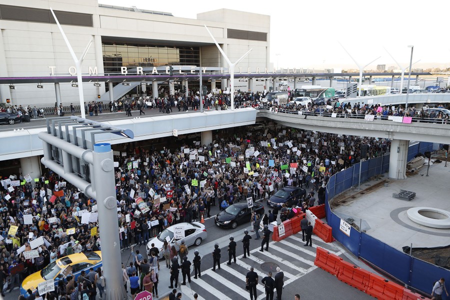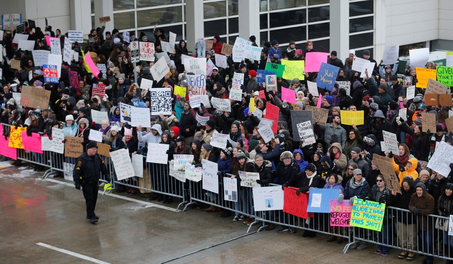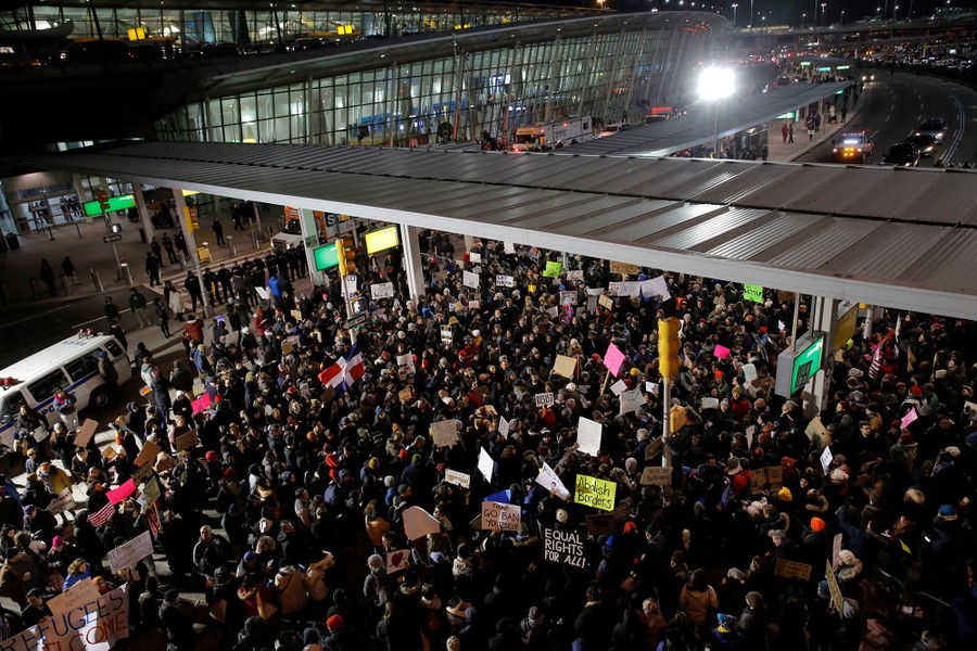 Shortly after President Trump signed an executive order temporarily barring citizens of seven predominantly Muslim nations, protests arose in airports across the country, where some travelers were being detained. Over the weekend, demonstrators with signs and lawyers offering legal advice jammed airports, while rallies and marches took place in city streets and squares. Gathered here, images from this weekend’s protests against the ban, from New York, Atlanta, Chicago, Los Angeles, Houston, Seattle, Washington, DC, Dallas, Boston, Detroit, Philadelphia, and more.
