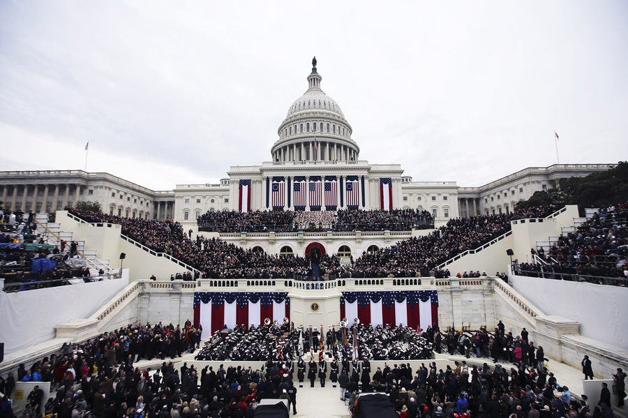 On January 20, 2017, the peaceful transfer of American power took place in Washington, DC, as the 44th President of the United States, Barack Obama passed the office to President-elect Donald J. Trump. Hundreds of thousands attended the ceremony, gathering in the National Mall to hear the swearing in and Trump’s inaugural address, while groups of protesters clashed with police in some of Washington’s streets. President Trump, Vice President Mike Pence, and their wives then bid farewell to former President Obama and his wife, as the Obamas headed to Air Force One for one last flight.