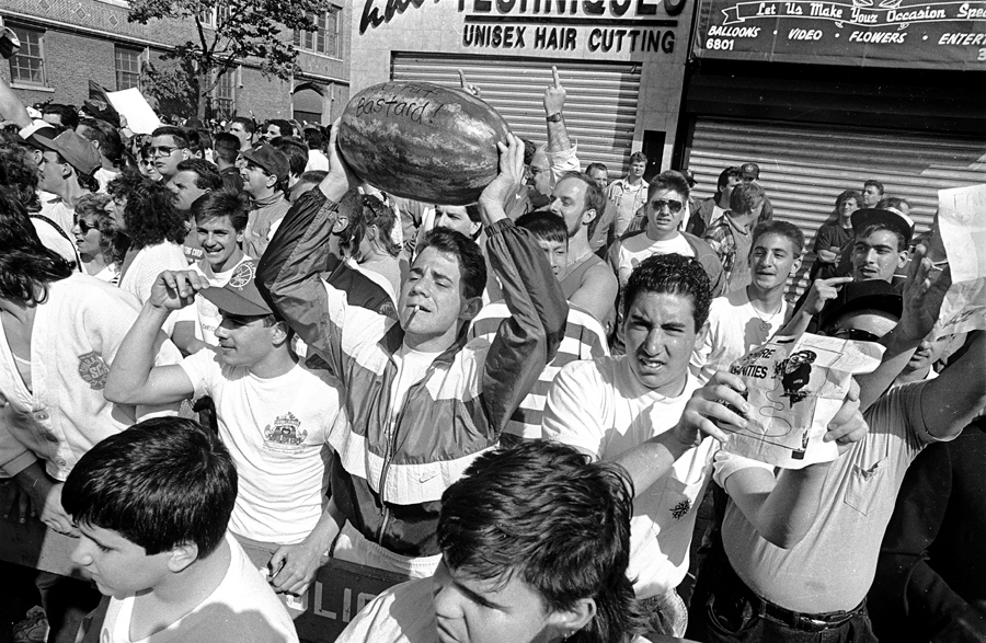 A new exhibition captures the rallies, riots, marches, and demonstrations that erupted in New York City between 1980 and 2000. Entitled “Whose Streets? Our Streets!” the current show at the Bronx Documentary Center explores residents’ reactions to two decades of swift economic and demographic change. The era was consumed by issues of police brutality, gentrification, AIDS, gay and lesbian rights, reproductive rights, U.S. foreign policy and military actions, and education and labor relations.