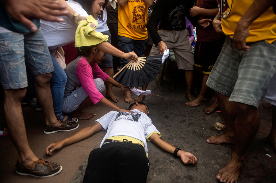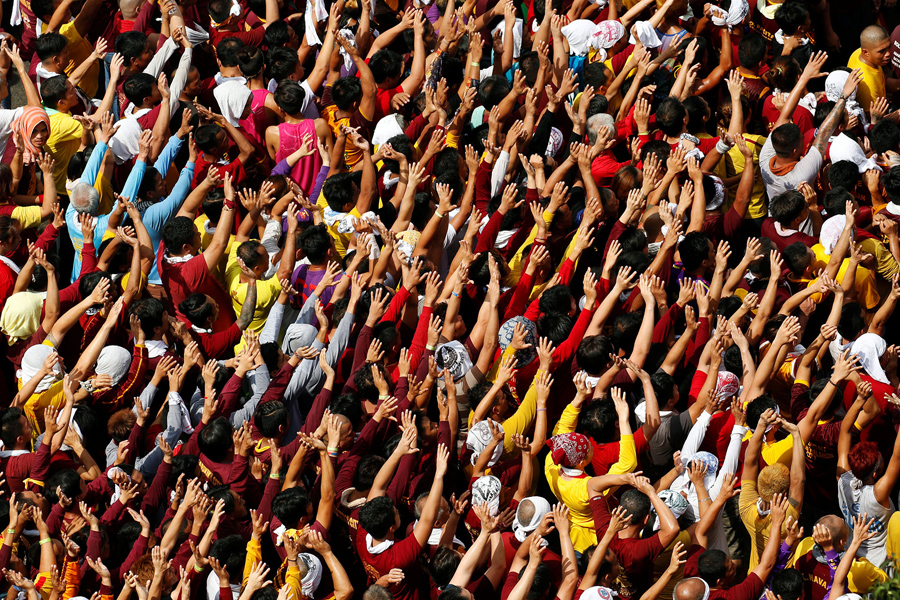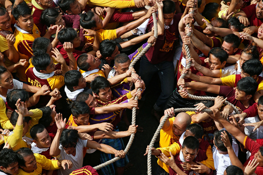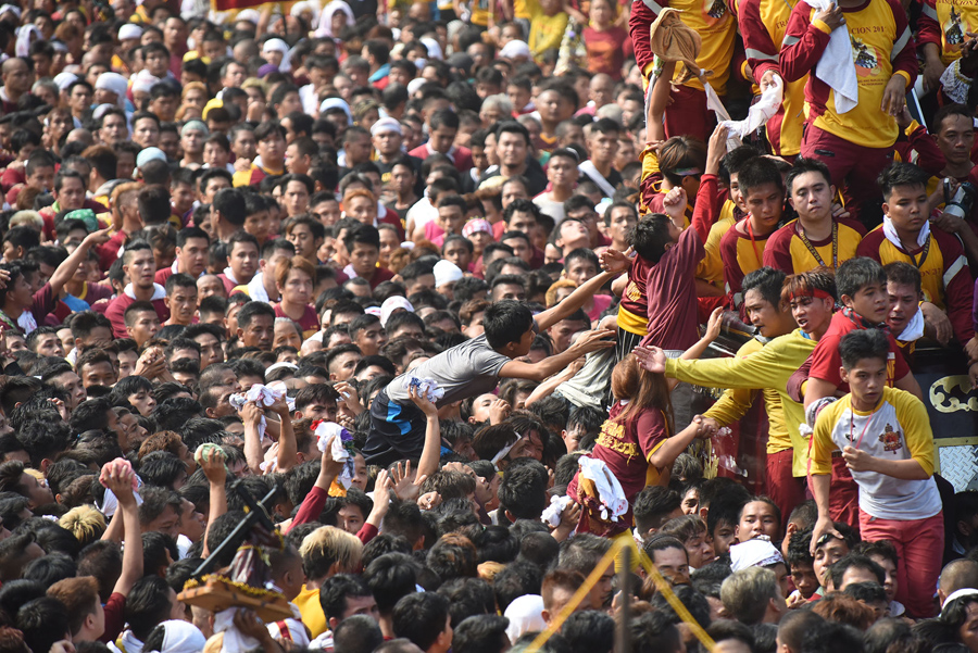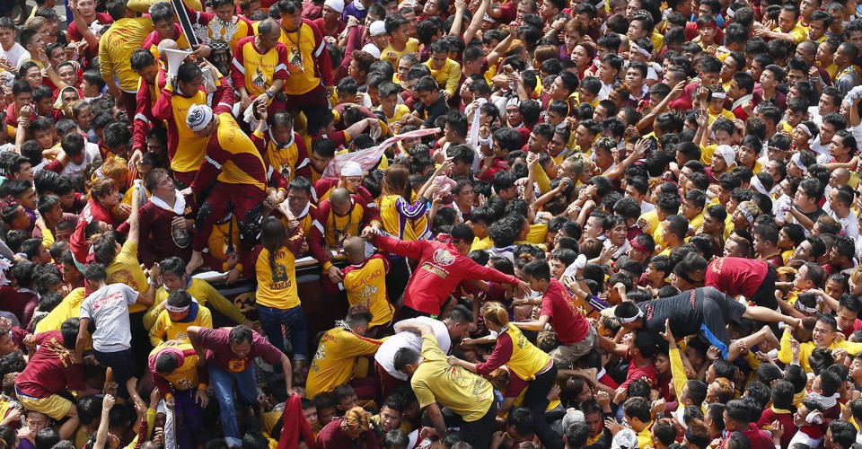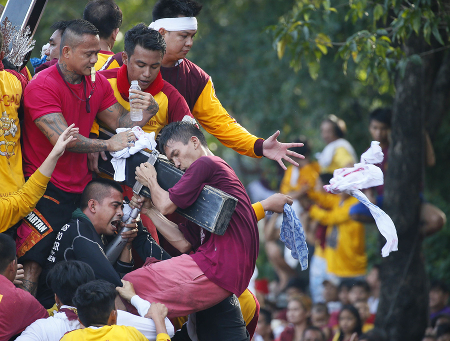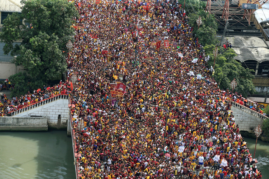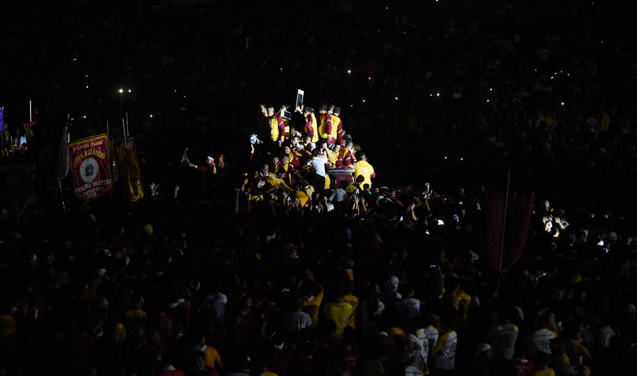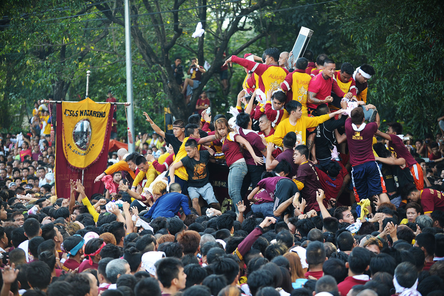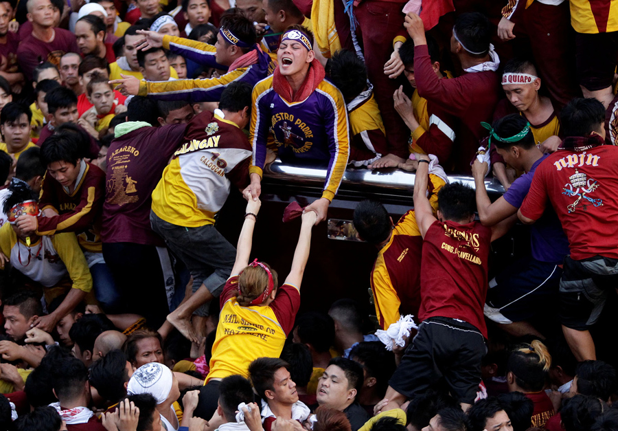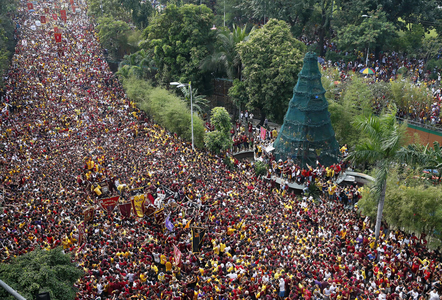 On January 9, hundreds of thousands of Catholic devotees in Manila, Philippines, took part in a barefoot procession lasting 22 hours, carrying a centuries-old icon of Jesus Christ through the streets as worshipers climbed over each other to kiss, touch, or rub bits of cloth on the statue. The Black Nazarene is an ebony statue of Jesus Christ brought to the Philippines in 1606, and is believed to have miraculous powers. Organizers said that events related to the annual festival were expected to draw about 15 million people to Manila this year.