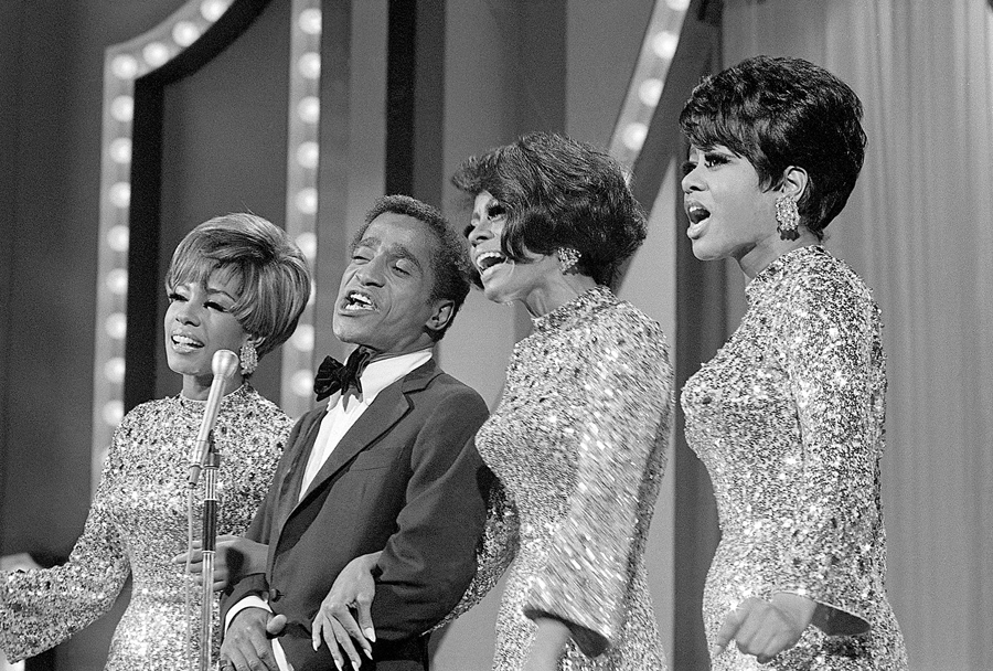 Read moreSammy Davis Jr., sings along with Diana Ross & The Supremes on the " Hollywood Palace" television show on October 2, 1967. From left: Mary Wilson, Davis Jr., Diana Ross, leader of the group and Cindy Birdsong. She replaced Florence Ballard who had left the group recently. #