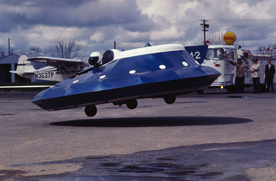 Read moreProfessor Paul Moller of the University of California sits in the cockpit of the flying saucer he invented after the craft landed successfully from a flight three feet above the ground. Moller could not take the saucer any higher because he is not a licensed pilot. He predicted, however, that saucers will soon move from city to city at 150 m.p.h. #