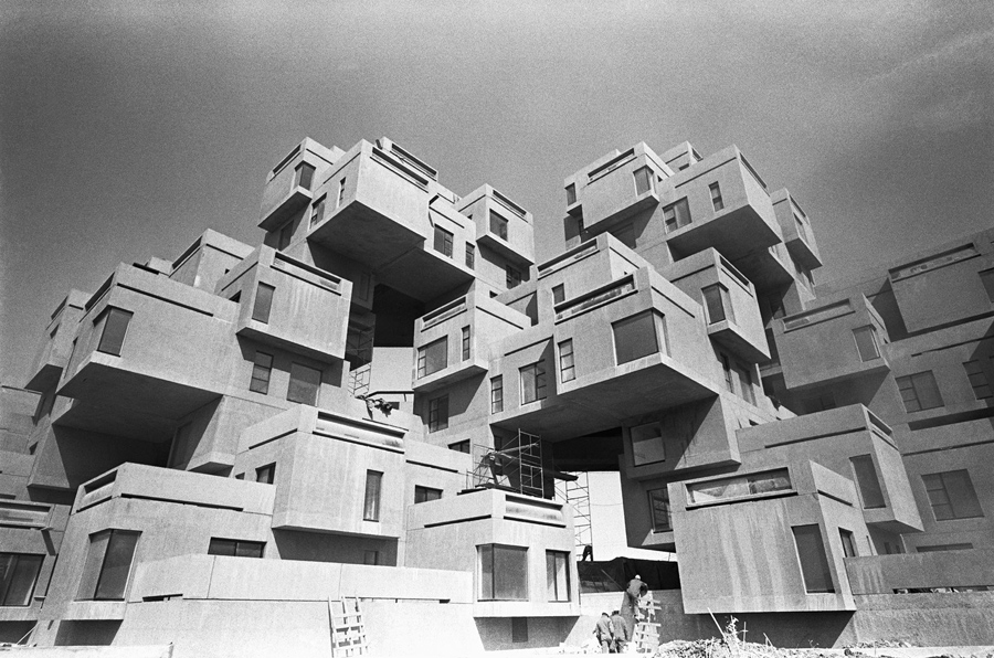 Read moreHabitat 67, a prefabricated housing structure designed by Israel born Canadian architect Moshe Safdie for Expo 67 in Montreal, Canada, is made up of a basic structural unit of precast concrete, 38 1/2 feet long, 17 1/2 feet wide and 10 feet high, which is finished off with a kitchen, bathroom, fixtures and other living features. The structure still stands today, see it on Google Maps Streetview. #
