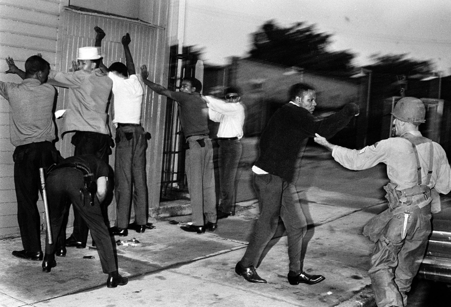 Read moreA National Guardsman moves a civilian towards the wall as police search others tonight in riot-torn Newark, New Jersey, on July 15, 1967. It wasn't known why the group was stopped and searched. None were arrested. Sniper fire continued throughout the evening in the fourth night of racial rioting. #