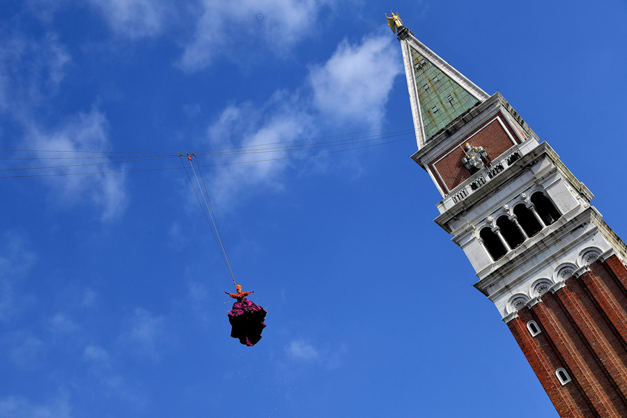Read moreThe winner of the 2016 edition of the "Festa delle Marie" (Marie contest), Claudia Marchiori performs as the Angel of the new carnival on February 19, 2017, in Venice. The "Flight of the Angel" is a traditional event that goes back to the Serenissima period. #