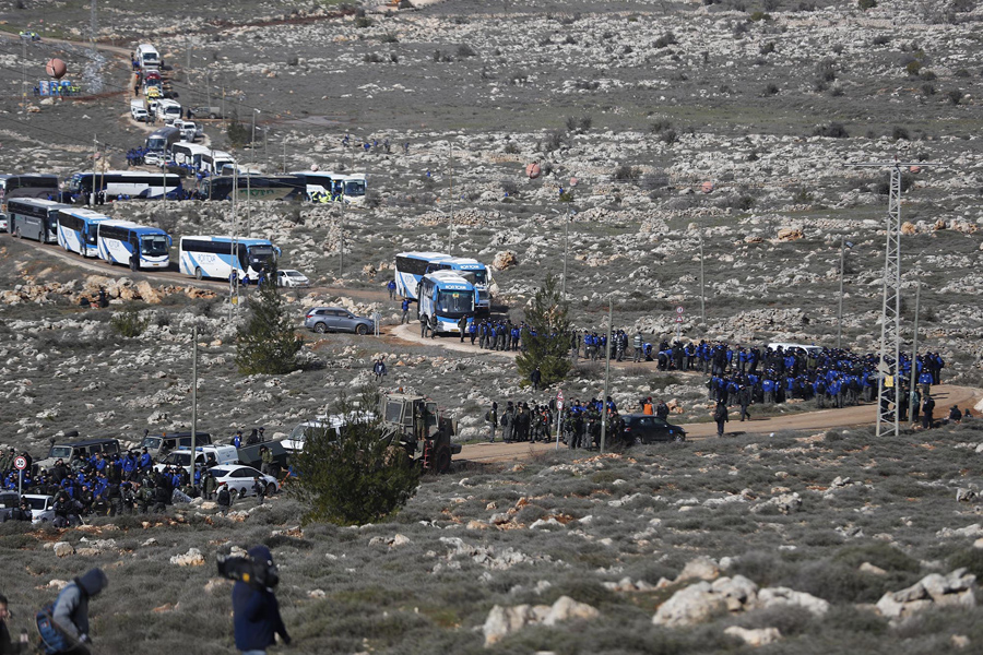 Read moreIsraeli security forces gather at the Amona outpost, northeast of Ramallah, on February 1, 2017 as they prepare to evict hardline Jewish occupants of the settlement outpost. #