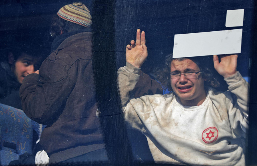 Read moreAn Israeli settler shouts at police from the window of a bus after being evicted on the second day of an Israeli police operation to remove the hardline occupants and their supporters from Amona on February 2, 2017. #