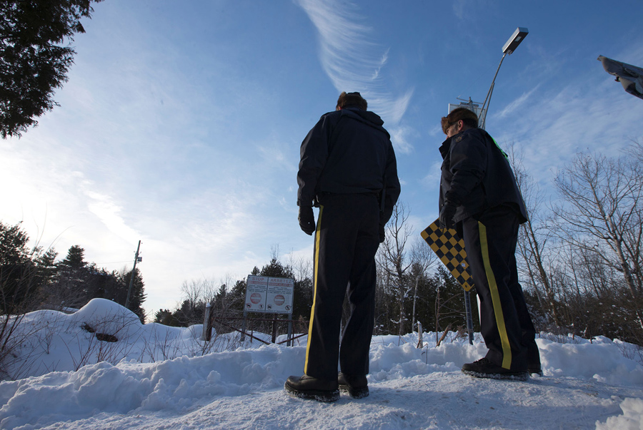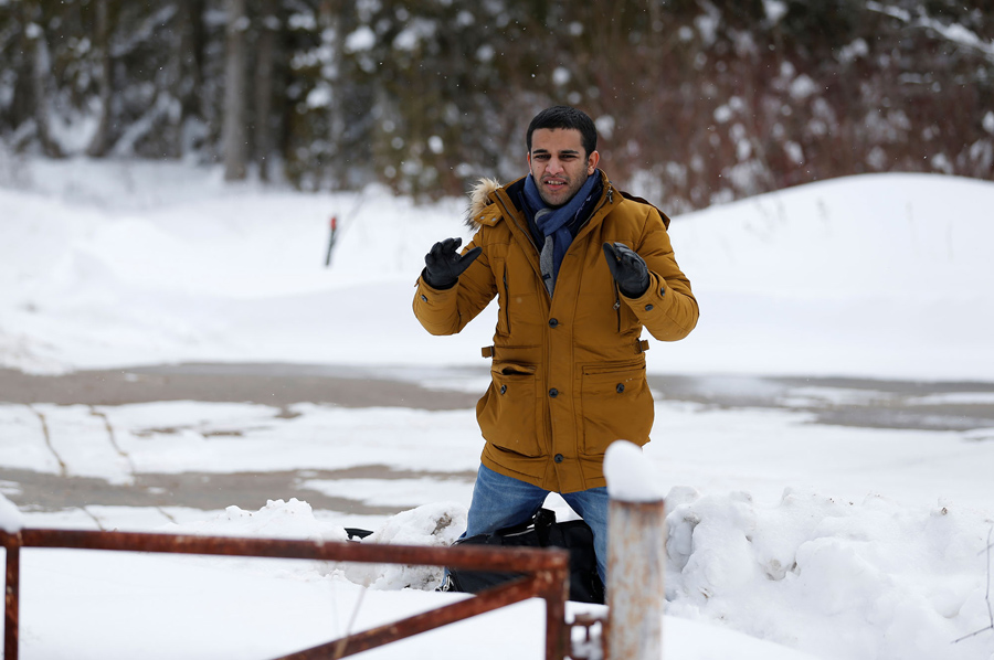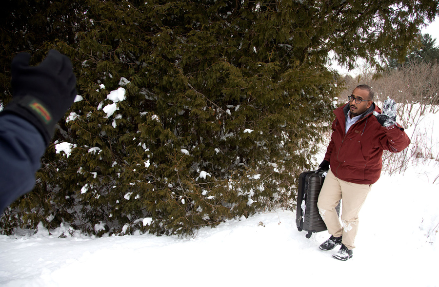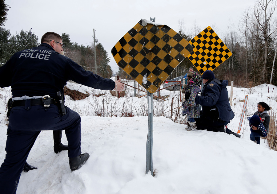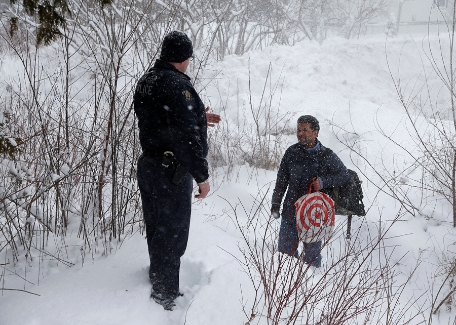 Reuters photographer Christinne Muschi recently spent time at the end of a small country road in Hemmingford, Quebec, that dead-ends at the U.S.-Canada border, just across from another dead-end road near Champlain, New York. She was photographing refugees, traveling alone or in small groups, who had taken taxis to the end of the road in the U.S., then walked across the border into Canada, into the custody of the RCMP. While the location is not an official border crossing, it is one of several spots that have become informal gateways to an increasing number of refugees choosing to leave the United States. Muschi reports that “in Quebec, 1,280 refugee claimants irregularly entered between April 2016 and January 2017, triple the previous year's total.” and that “the Canada Border Services Agency said in January that 452 people made a refugee claim at Quebec land border crossings.” Canadian advocacy groups say they are preparing for even more asylum-seekers, following increased anti-Muslim rhetoric in the U.S., and public expressions of welcome made by Canadian Prime Minister Justin Trudeau.