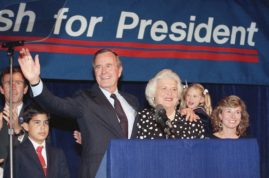 Read moreVice President George Bush and wife, Barbara, wave to supporters that turned out in Houston, Texas, to hear him announce he was a candidate for the Republican nomination for president of the United States, on October 12, 1987. #