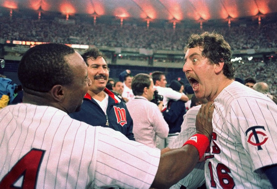 Read moreMinnesota Twins Kirby Puckett (left) celebrates with teammate Frank Viola (right) after they defeated the St. Louis Cardinals in Game 7 to win the 1987 World Series in this October 25, 1987 photo. #