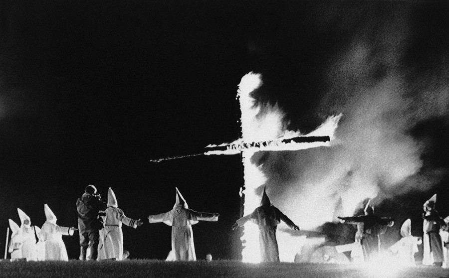 Read moreWearing traditional robes of the Invisible Empire, Ku Klux Klan members form a circle around a burning cross in Rumford, Maine on September 27, 1987. Lead by the group’s national leader Imperial Wizard James W. Farrands, the Klan had gathered on a rural farm in western Maine for a rally. #