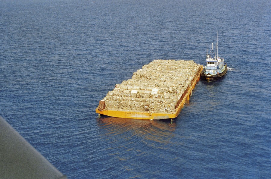 Read moreThe "gar-barge", a barge full of 3,100 tons of Brooklyn garbage, floats around near Key West, Florida, on May 7, 1987. The barge, originally chartered to be towed from New York to North Carolina, but local officials denied the barge entry in North Carolina, and ordered it to move on. The barge spent months in 1987 moving from port to port, as far south as Belize, trying to find someone to take its garbage, with no luck. The "gar-barge" cargo was eventually returned to Brooklyn for incineration. #