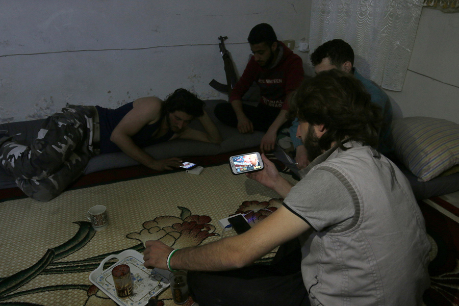 Read moreA Harakat Nour al-Din al-Zenki fighter watches news about Donald Trump's election as president on his smart phone in the rebel-held beseiged area in Aleppo on November 9, 2016. #