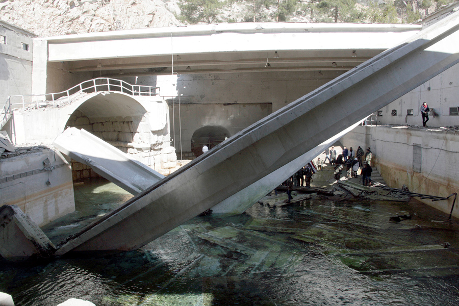 Read moreMen inspect damage in the water pumping station in the village of Ain al-Fija in the Wadi Barada valley near Damascus, Syria in this handout picture provided by SANA on January 29, 2016. #