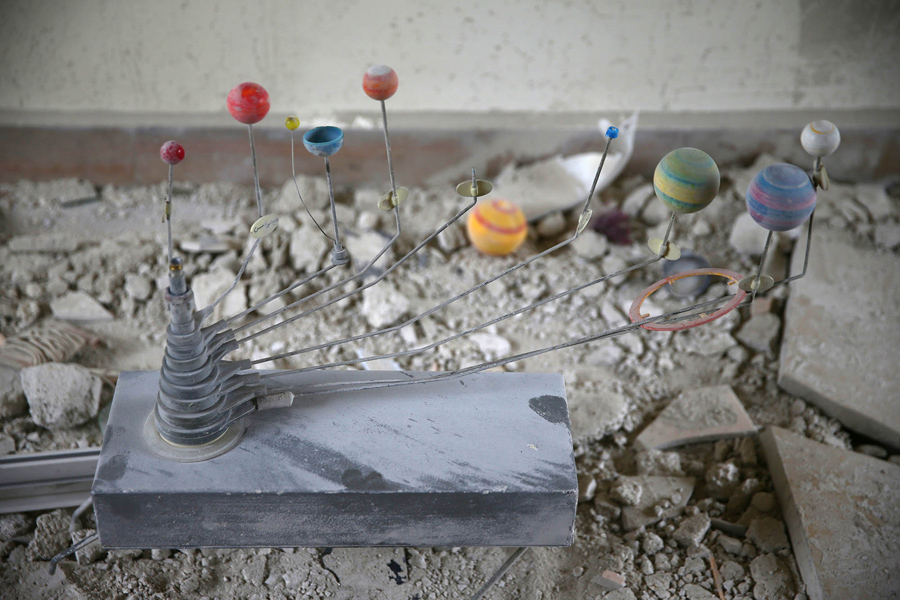 Read moreA damaged orrery, a working model of the solar system, inside a damaged school in the rebel-held city of Douma, in the eastern Damascus suburb of Ghouta, Syria, on March 2, 2017. #