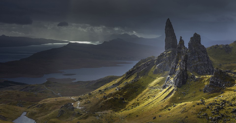 Read moreLighting the Old Man On a stormy autumn day a fleeting shaft of light illuminates the Old Man of Storr and other pinnacles of the Trotternish Ridge on the Isle of Skye, Scotland. Photographed by Garry Ridsdale. #