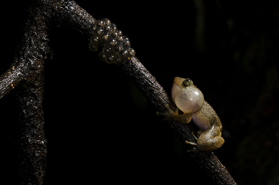 Read moreFather Calling This night frog, endemic to the Western Ghats of India, exhibits a unique breeding behavior. The males call for females, the females come and lay the eggs, then the males fertilize them. In this image, the male has successfully fertilized a clutch of eggs from a female. He is calling out for other females to lay eggs. Photographed by Karthik AK. #