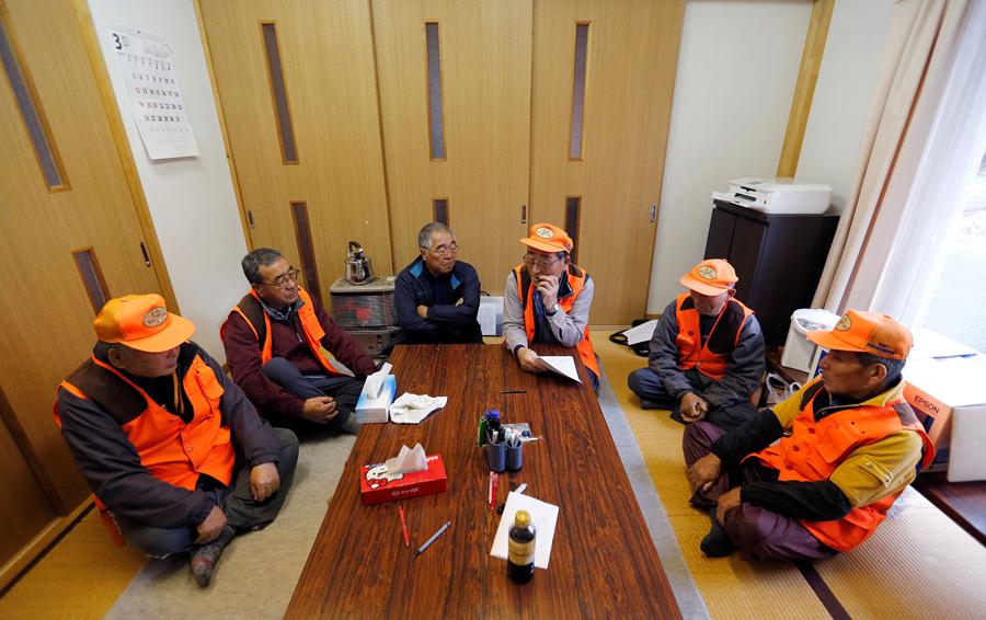Read moreMembers of Tomioka Town's animal control hunters group take a photo of wild boars they killed in a residential area inside the evacuation zone near TEPCO's tsunami-crippled nuclear power plant in Tomioka town, Japan, on March 2, 2017. #