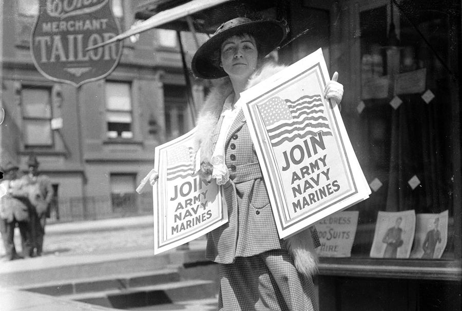 Read moreOriginal caption: "Suffragettes Aid Recruiters To Enlist Men for the Navy. Miss Frances E. Fitch one of the pretty suffragettes who aided in enlisting men for the Navy by placing Navy Posters in store windows." #