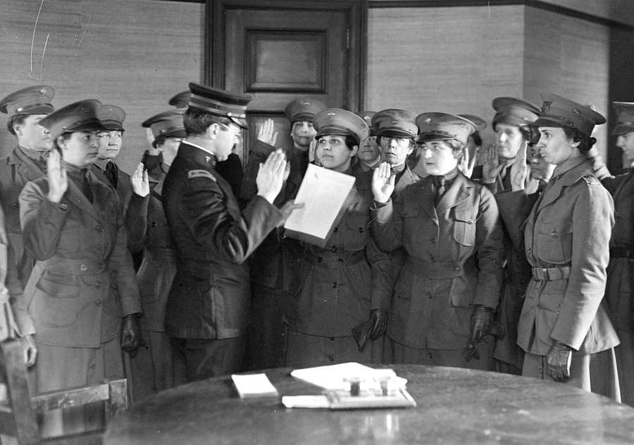 Read moreWomen in the motor corps of the National League of Women's Service taking the oath of allegiance at the 71st Regiment Armory, New York City, on May 29, 1917 during World War I. #