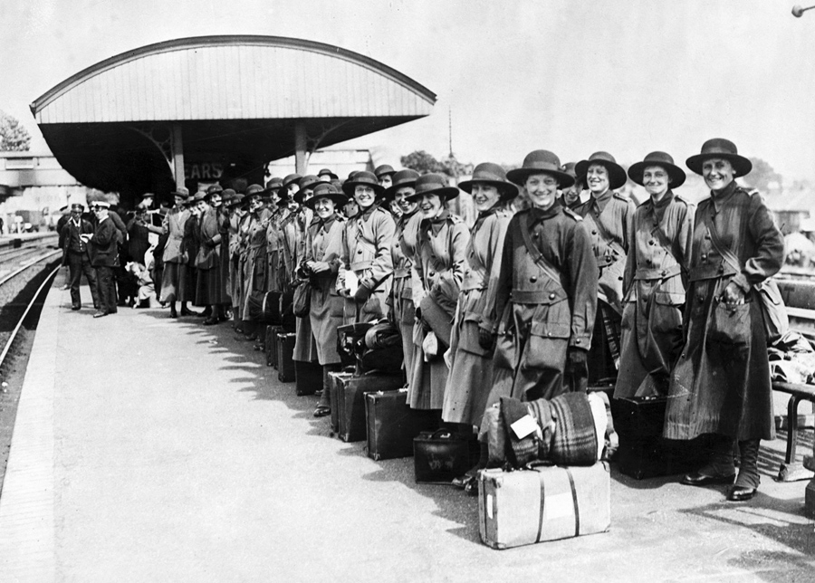 Read moreOriginal caption: "British women's auxiliary force which may be used for many things behind the firing line, lined up for parade just before their departure for France, on August 26, 1917." #