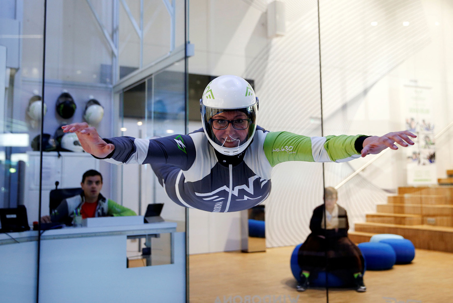 Read morePaloma Granero, 38, a skydiving instructor, poses for a photograph inside the wind tunnel at Windobona indoor skydiving in Madrid, Spain, on February 24, 2017. "Men don't have to prove themselves like we do. We are tested every day," Granero said. "The instruction jobs still go mostly to men, whereas the administrative jobs go mostly to women." #