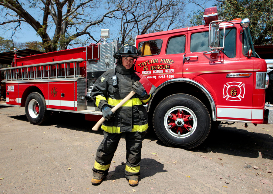 Read moreYolaina Chavez Talavera, 31, a firefighter, poses for a photograph in front of a truck at a fire station in Managua, Nicaragua, on February 22, 2017. "In my early days as a female firefighter, men, my team mates, thought that I would not last long in the organization due to the hard training. However, in practice I showed them that I am able to take on tasks at the same level as men. I think women must fight to break through in all areas, in the midst of the machismo that still persists in Nicaragua and in Hispanic countries," Talavera said. #