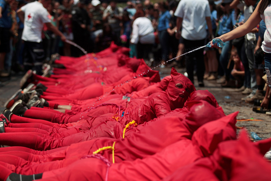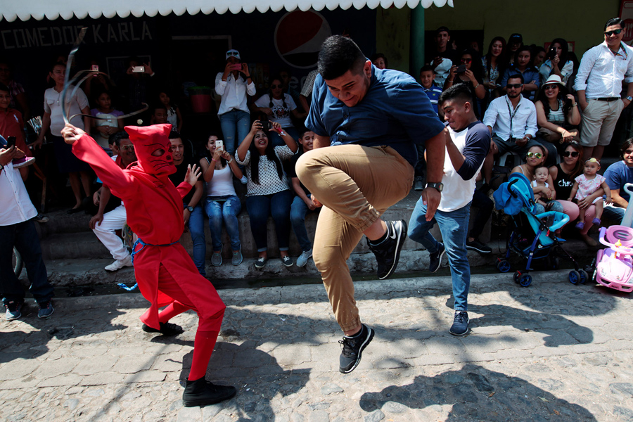 Read moreActors dressed as demons participate in a ceremony known as Los Talciguines, as part of religious activities to mark the start of Holy Week in Texistepeque, El Salvador, on April 10, 2017. #