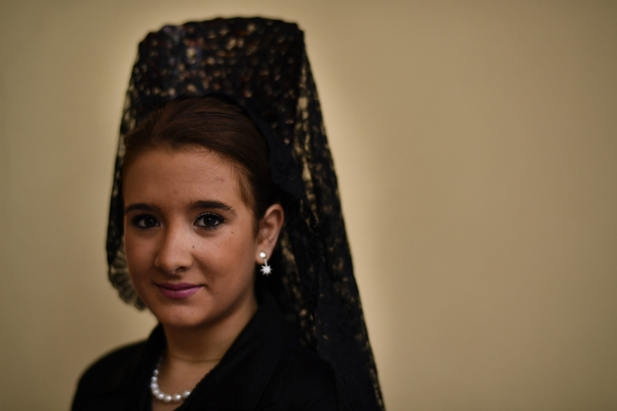 Read moreA penitent holds a rosary while taking part in the procession of the Exaltacion de La Santa Cruz brotherhood, during Holy Week in Zaragoza, Spain, on April 13, 2017. #