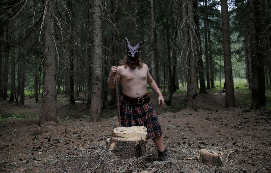 Read moreA man wears a mask during Celtica, the festival of Celtic culture and traditions in the Bois-de-Peuterey in Val Veny, Courmayeur, near Aosta, Italy, on July 9, 2016. #