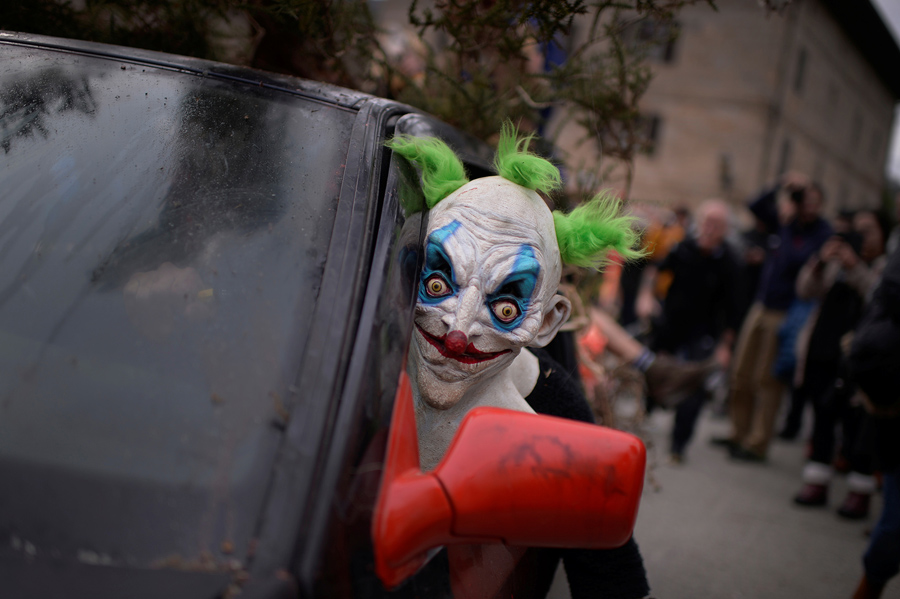 Read moreIn this April 1, 2017 picture a man wears the traditional 'Tora' outfit used during the carnival during a gathering of different villages' carnival masks and characters in the small village of Casavieja, Spain, on April 3, 2017. #