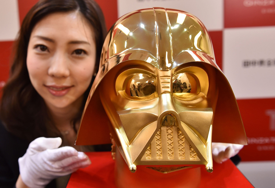 Read moreAn employee of Japan's jeweler Tanaka Kikinzoku Jewelry displays a pure gold life size mask of Darth Vader at their main shop in the Ginza shopping district in Tokyo on April 25, 2017. The pure gold mask will go on sale on May 4 to commemorate the 40th anniversary of the release of the original Star Wars movie. #