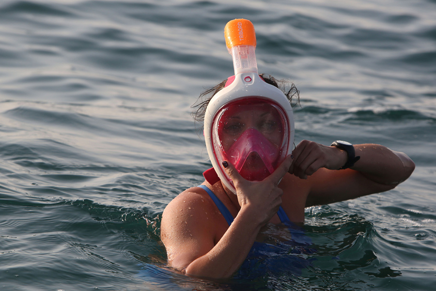 Read moreA woman adjusts her mask as she takes part in a 17-kilometer swim from Jordan to Israel across the Dead Sea, organized by the EcoPeace charity, aimed at raising awareness for the iconic water body which has been receding by roughly a meter each year, on November 15, 2016. #