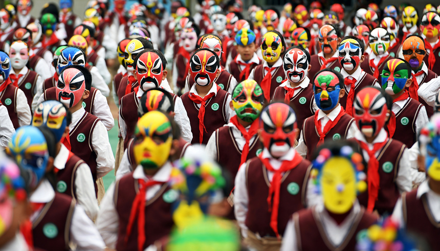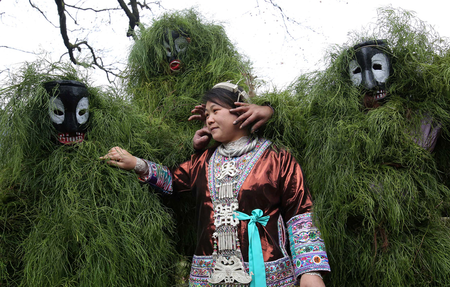 Read moreEthnic Miao men wearing traditional masks smear dust on a woman's face to wish her good luck during a local celebration event for Lunar New Year in Liuzhou, Guangxi Zhuang Autonomous Region, China, on February 5, 2017. #