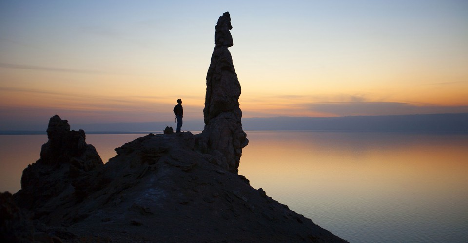 Read moreSouthern shore of the Dead Sea, Al-Karak Governorate, Jordan. "Lot's Wife" at dusk, on December 29, 2007. According to legend, the column made of salt and rocks standing on the southern shore of the Dead Sea is the statue of prophet Lot's wife. #