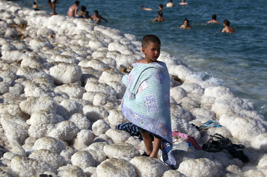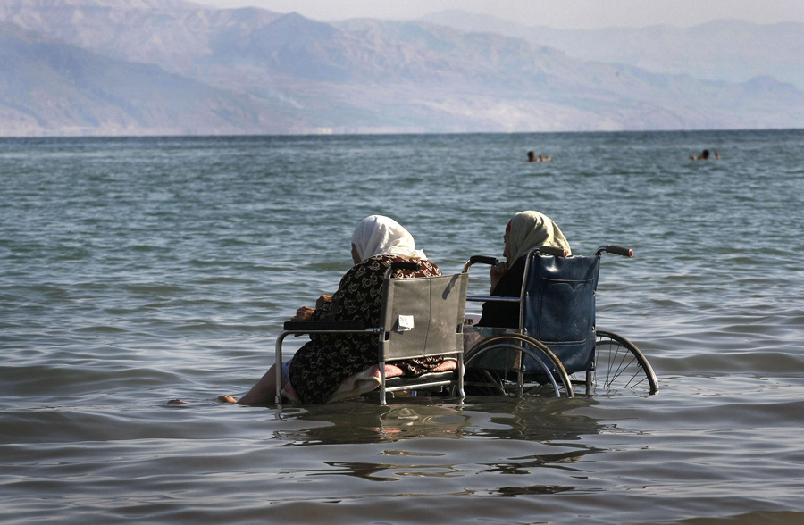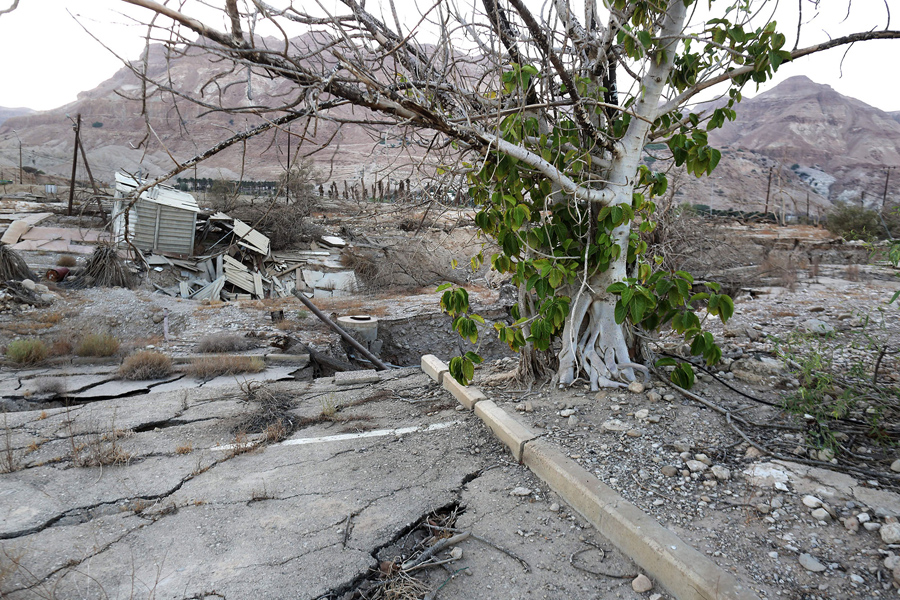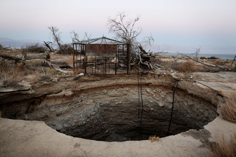 The Dead Sea, on the border between Israel and Jordan, is the lowest and saltiest body of water in the world—and experts say it is on course to dry out by 2050, now shrinking by one meter per year. A water shortage in the already-dry region has been compounded by a growing population, agricultural uses, tourism, and industry that are diverts almost 90 percent of the Jordan River that normally flowed into the Dead Sea. The lowering water table has also caused thousands of sinkholes to form, some swallowing up roads and tourist resorts. A massive project is now moving forward to alleviate the loss of water, called the Red Sea–Dead Sea Water Conveyance: a $10 billion, 100-mile-long water pipeline in Jordan, built to pump water from the Red Sea to the Dead Sea. The pipeline, much delayed, is now slated to begin construction in 2018.