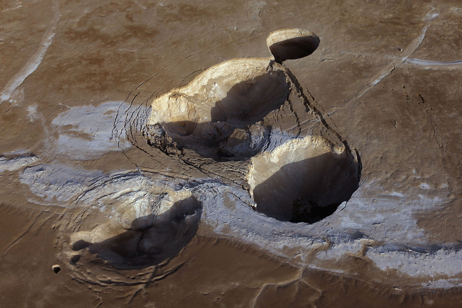 Read moreThe late afternoon sun casts its light over the sinkholes which mark the dried-out center section of the Dead Sea in this aerial view on September 30, 2010, in southern Israel. #