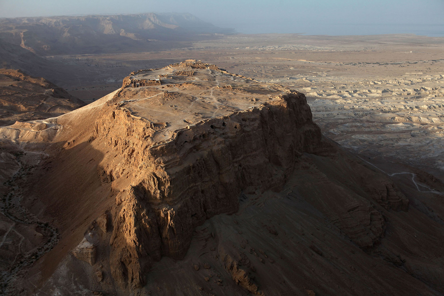Read moreAn aerial view of the ancient mountaintop fortress of Masada shortly before sunset on September 30, 2010, on the shores of the Dead Sea in southern Israel. According to Josephus, a 1st-century Jewish Roman historian, Herod the Great fortified Masada between 37 and 31 B.C. In 73 A.D., it was the last refuge of Jewish zealots fighting against Roman rule who chose mass suicide to surrender after the 10th Roman legion laid siege to the fortress. It was declared a UNESCO World Heritage Site in 2001. #