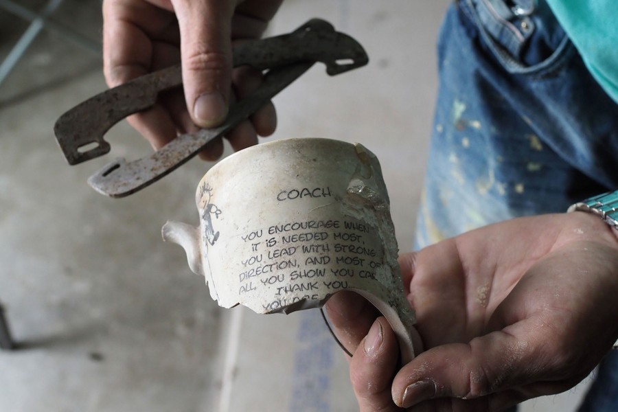 Read moreHomeowner Steven Menard displays his grandson's first ice skate blades and a mug with inspirational words, among the few items he was able to recover after his home was destroyed in a massive fire one year ago, in Fort McMurray, on April 19, 2017. #