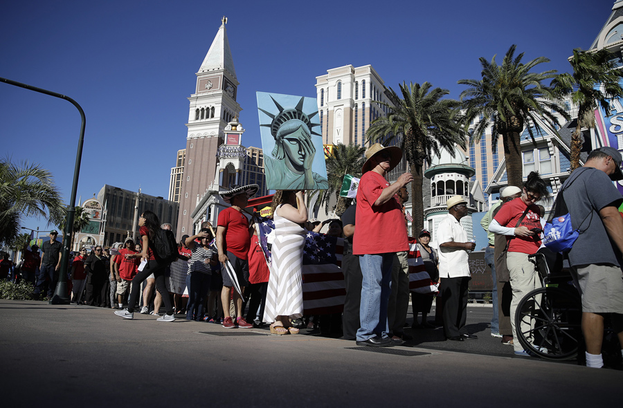 Read morePeople walk along the Las Vegas Strip during a May Day march on May 1, 2017. Union members and activists marched along and near the Las Vegas Strip to highlight immigration issues and push back against Trump administration policies. #