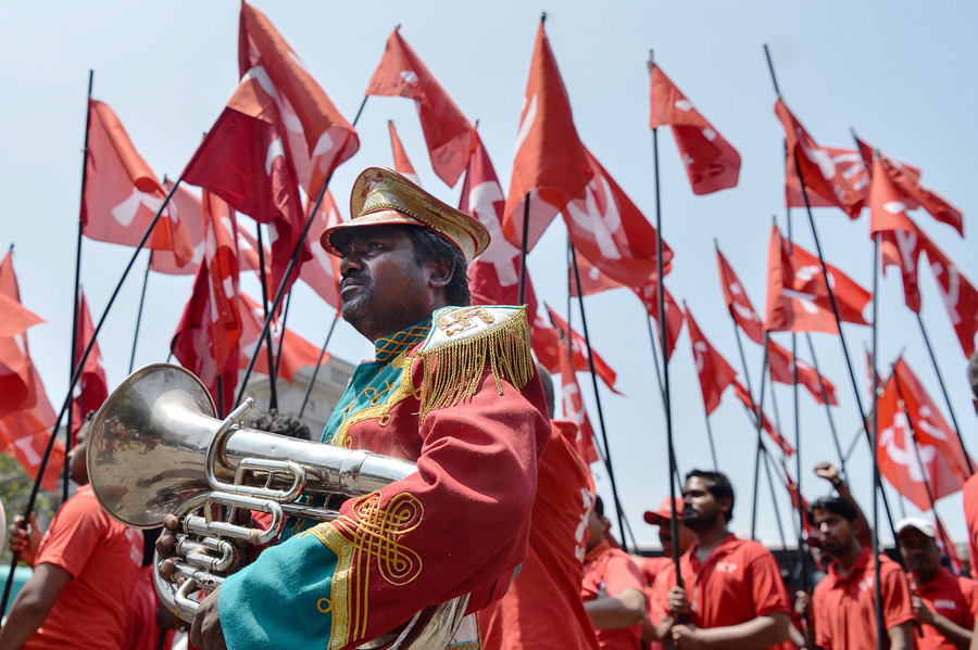 Read moreIndian workers and members of various trade unions dressed in red take part in a rally on the occasion of International Workers' Day in Bangalore, India, on May 1, 2017. #