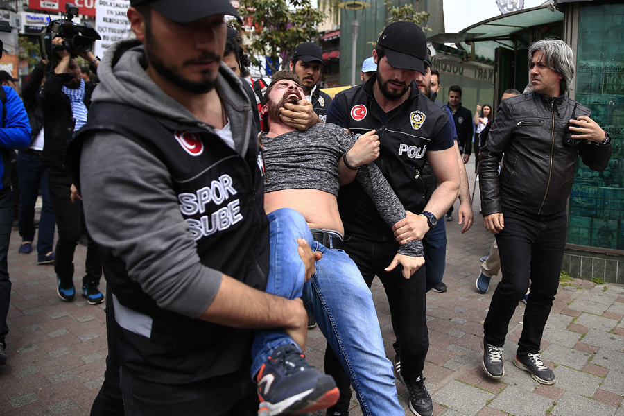 Read morePolice arrest a demonstrator during a May Day protest in Istanbul, Turkey, on May 1, 2017. Police in Istanbul detained more than 70 people who tried to march to iconic Taksim Square in defiance of a ban on holding May Day events there. #