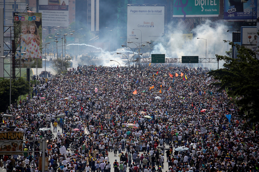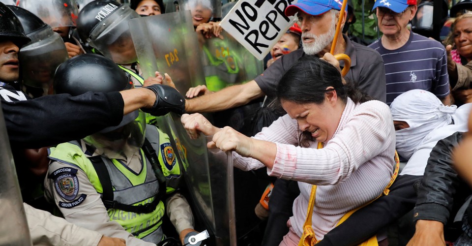 Since April 1, daily anti-government protests across Venezuela have frequently devolved into clashes with riot police, leaving thousands arrested, hundreds injured, and 43 dead. Opposition activists are protesting against the government of President Nicolas Maduro, blaming him for a crippling economic crisis that has caused widespread food shortages for years. Venezuelan opposition leaders are demanding immediate presidential elections, accusing Maduro of political repression and trying to cling to power.