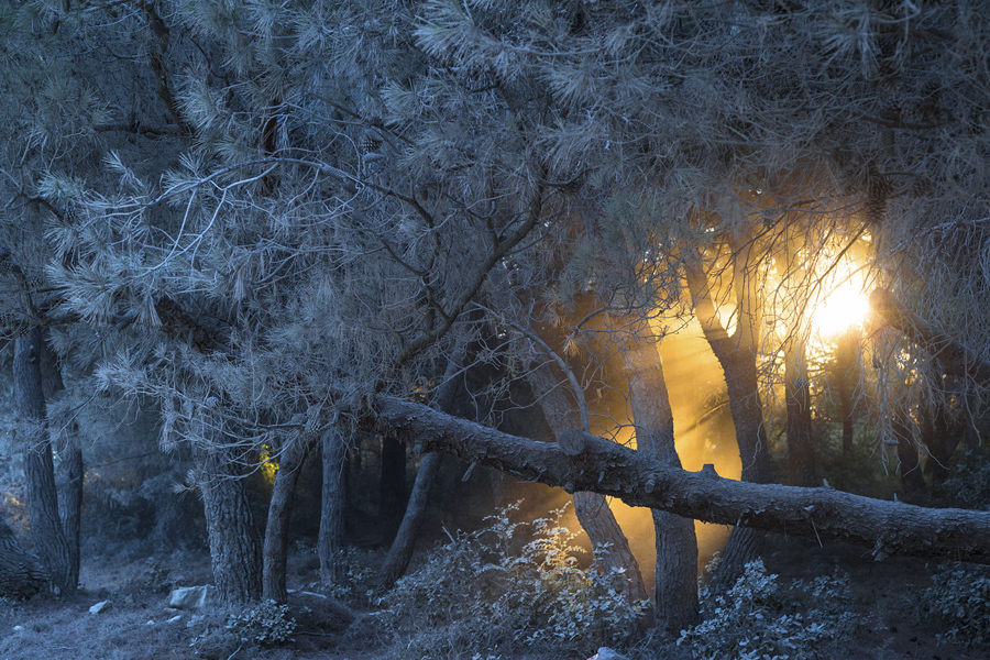 Read moreFire in the White Forest - In Premantura Park (Croatia) a combination of white dust from the ground that settled on the trees and a sunset seen between them leads to a unique view. #