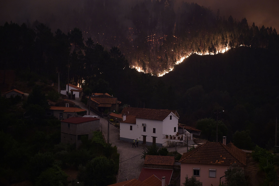 Read moreVillagers sit outdoors as a forest fire burns near the village of Fato, central Portugal, on June 18, 2017. #