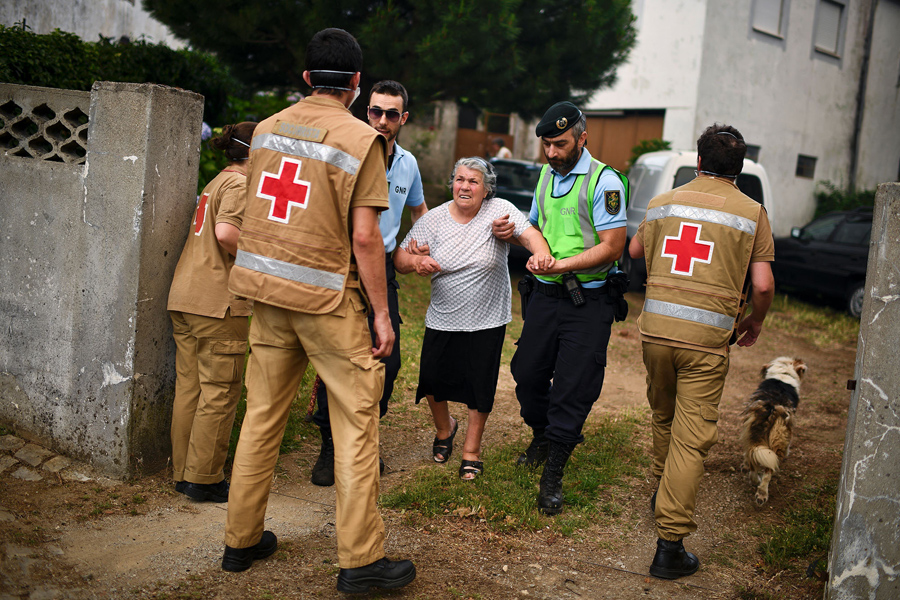 Read morePeople are evacuated from their houses by Red Cross and police members due the proximity of a dangerous wildfire at Torgal, Castanheira de Pera on June 18, 2017. #
