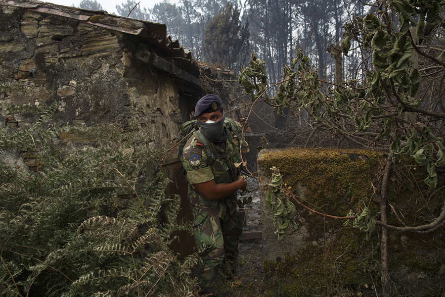 Read moreA Portuguese soldier checks the area and empty properties for possible human remains after a wildfire took dozens of lives on June 19, 2017 near Castanheira de Pera, in Leiria district, Portugal. #